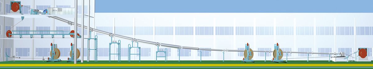 وحدة شد السلك بلف السير (أو كابستان كاتربلر) تعمل بشكل متزامن في خطCCV؛