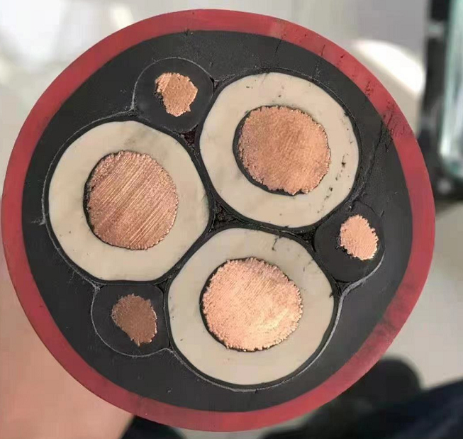 | مكونات الكابل | ستارة الموصل (طبقة الشبه الموصل الداخلية) من 0.5 إلى 1.5 مم | الطبقة العازلة من 1.2 إلى 10.5 مم | ستارة العزل (طبقة الشبه الموصل الخارجية) من 0.5 إلى 1.5 مم |